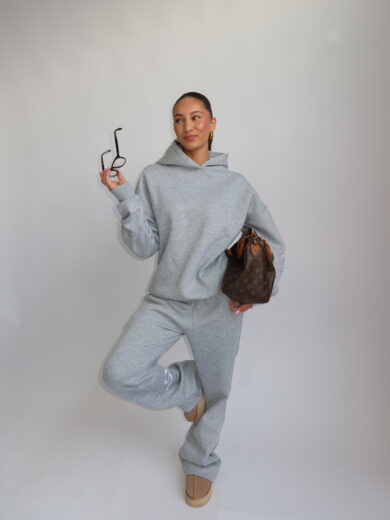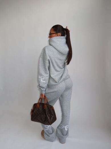 ANN-FLEUR BOW TRACKSUIT 🎀 - MARL GRAY WITH WHITE BOWS