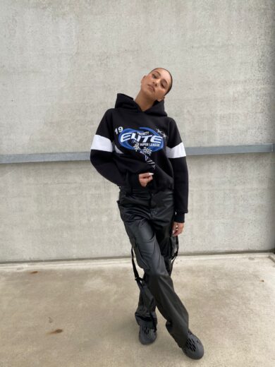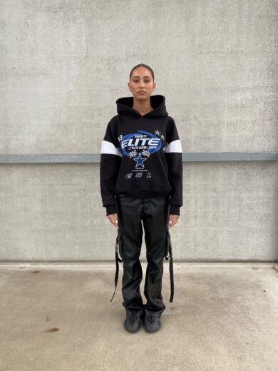 ELITE SUPER LEAGE HOODIE - NOIR AVEC IMPRESSION BLEUE - 420 GSM - MOTORSPORT AW23