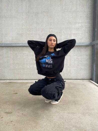 PRIORITY TURBO MOTORS SWEATER - NOIR AVEC IMPRESSION BLEUE - 420 GSM - MOTORSPORT AW23
