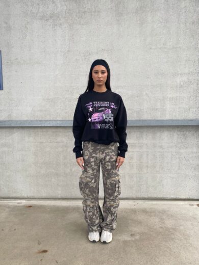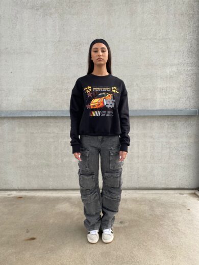 PRIORITY TURBO MOTORS SWEATER - NOIR AVEC IMPRESSION ROSE - 420 GSM - MOTORSPORT AW23