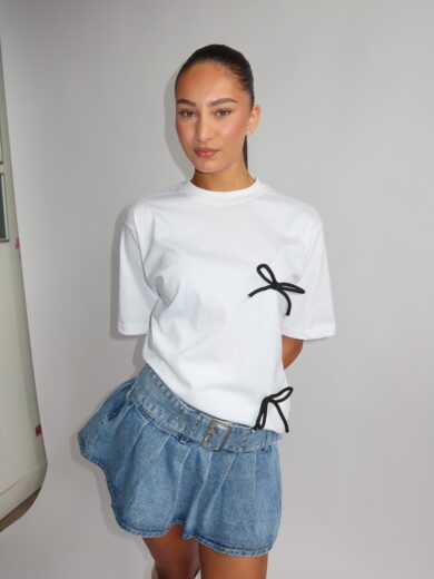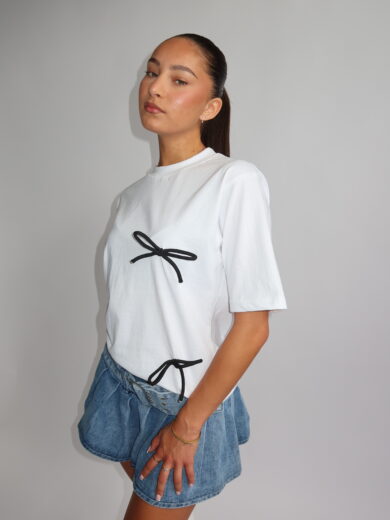 ANN-FLEUR - BOW PATCH TEE - WHITE