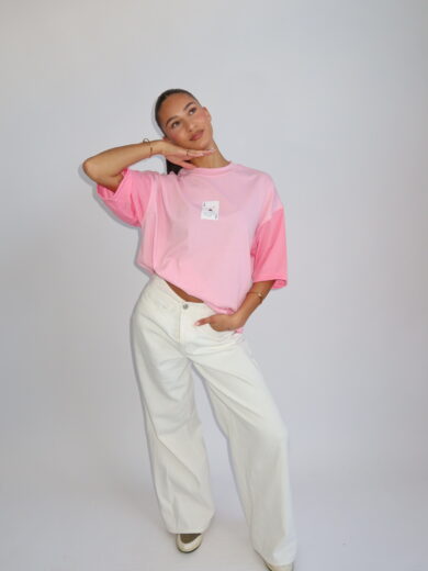 OVERSIZED TEE WITH JERSEY SLEEVES - PINK