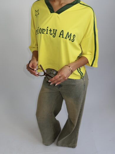 OVERSIZED TEE WITH JERSEY SLEEVES - YELLOW