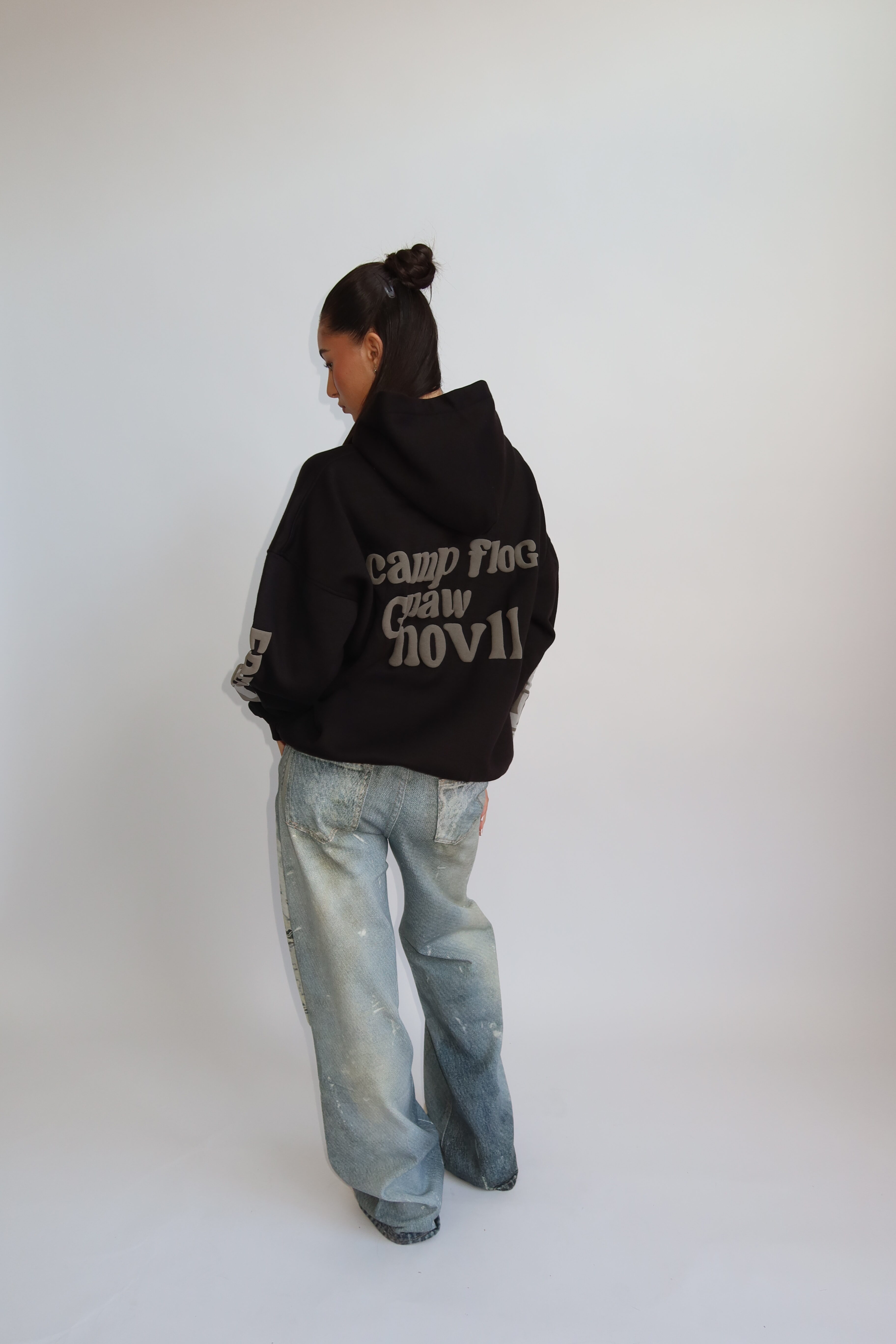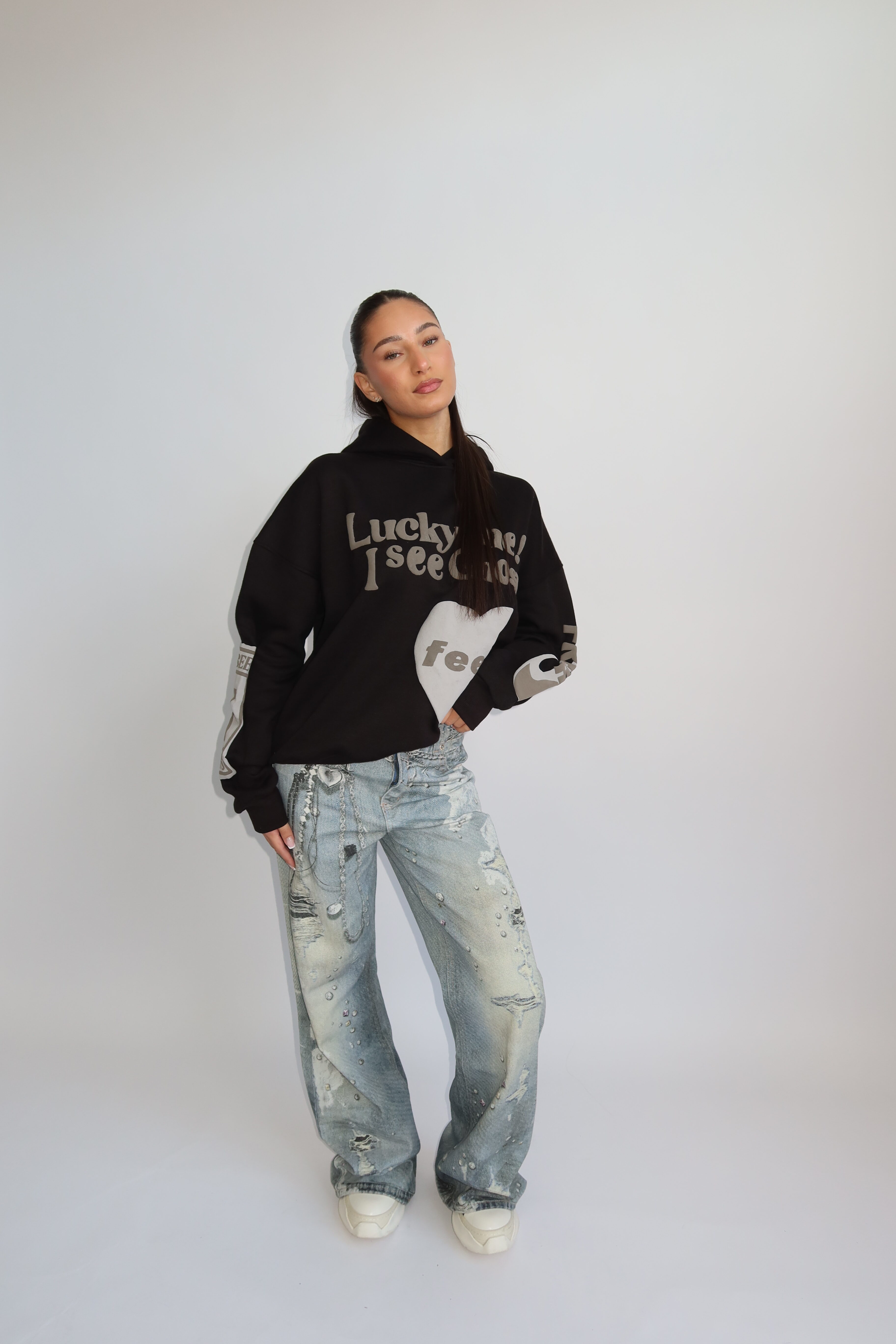 AW25 – LUCKY ME HOODIE – BLACK WITH EARTH TONES