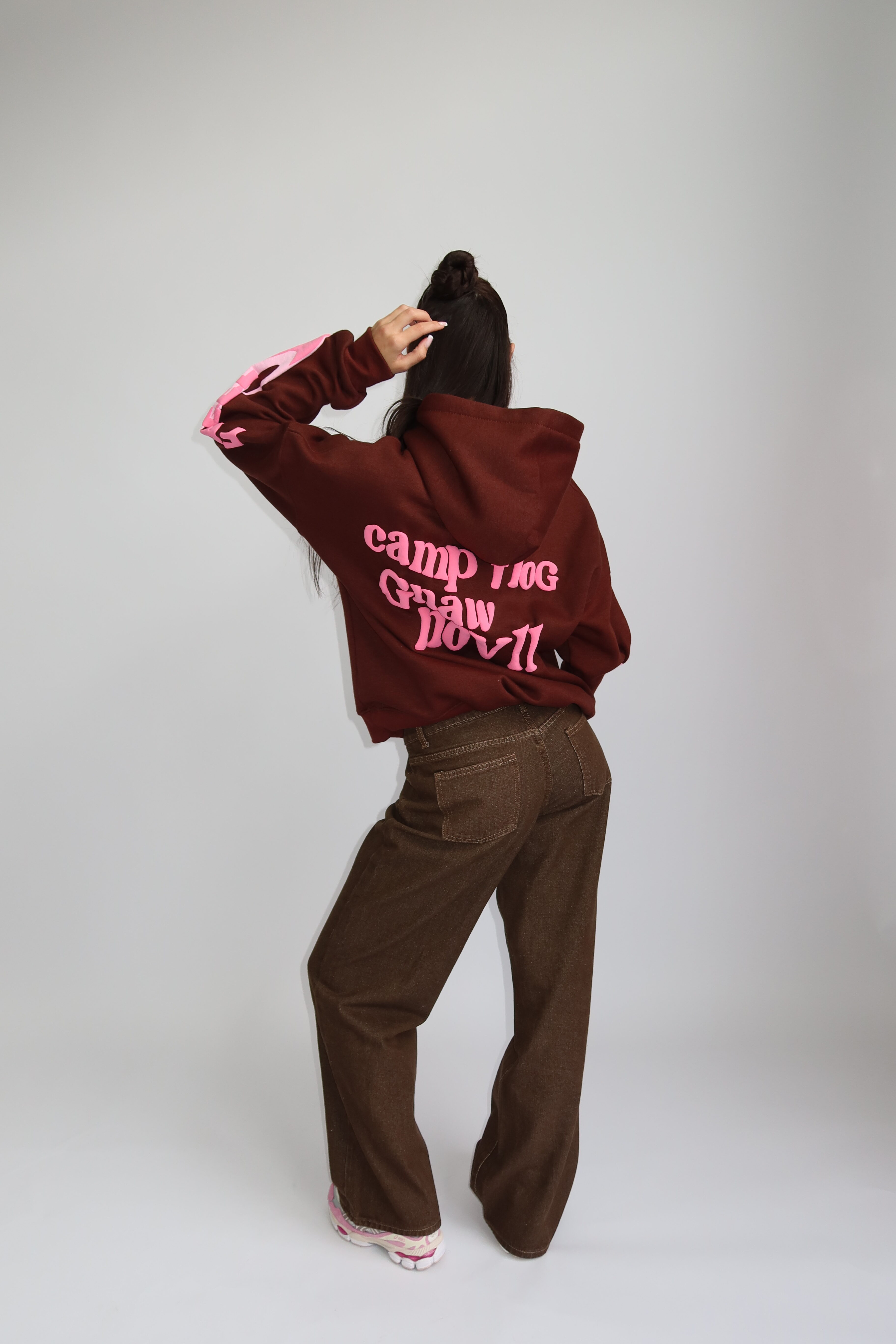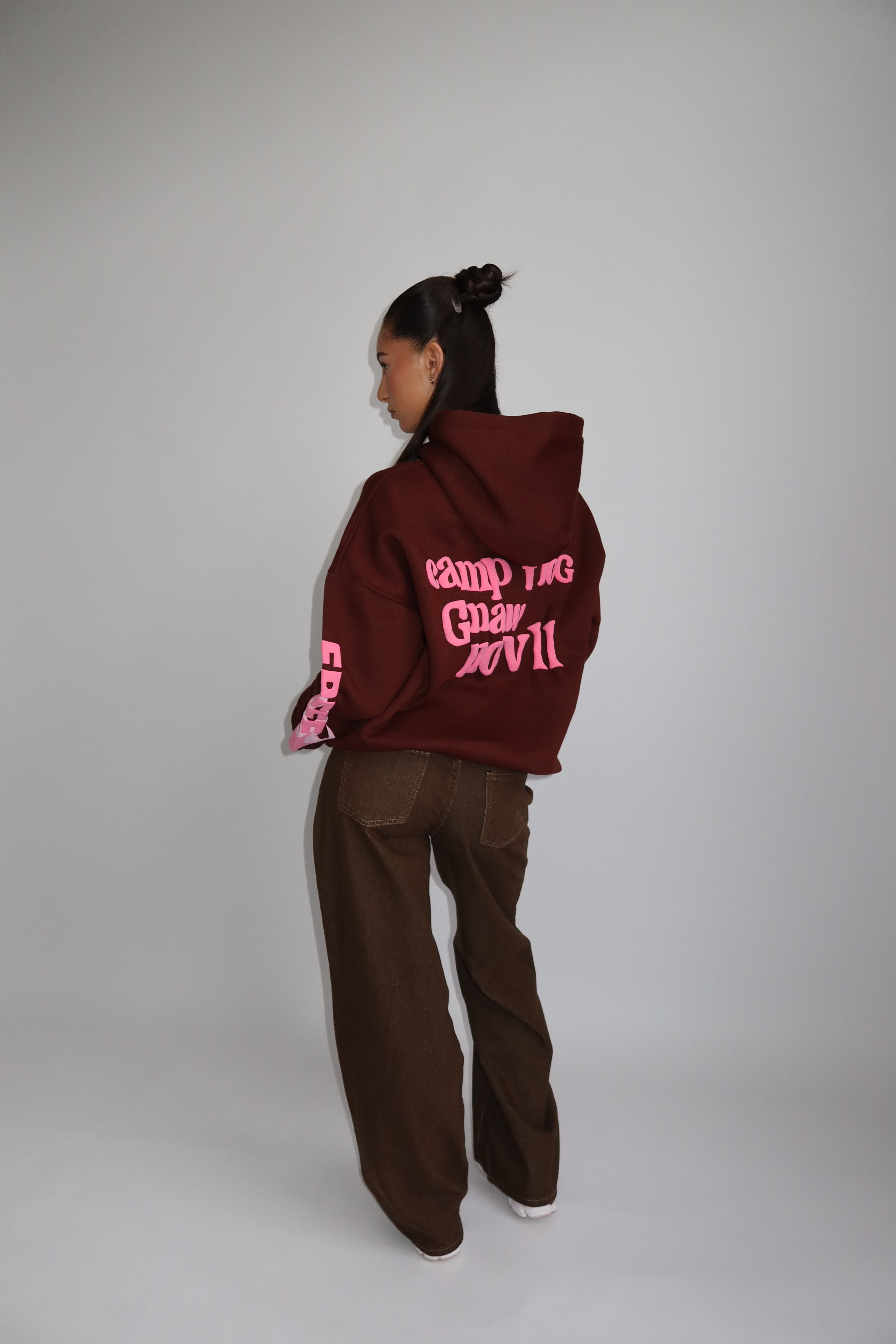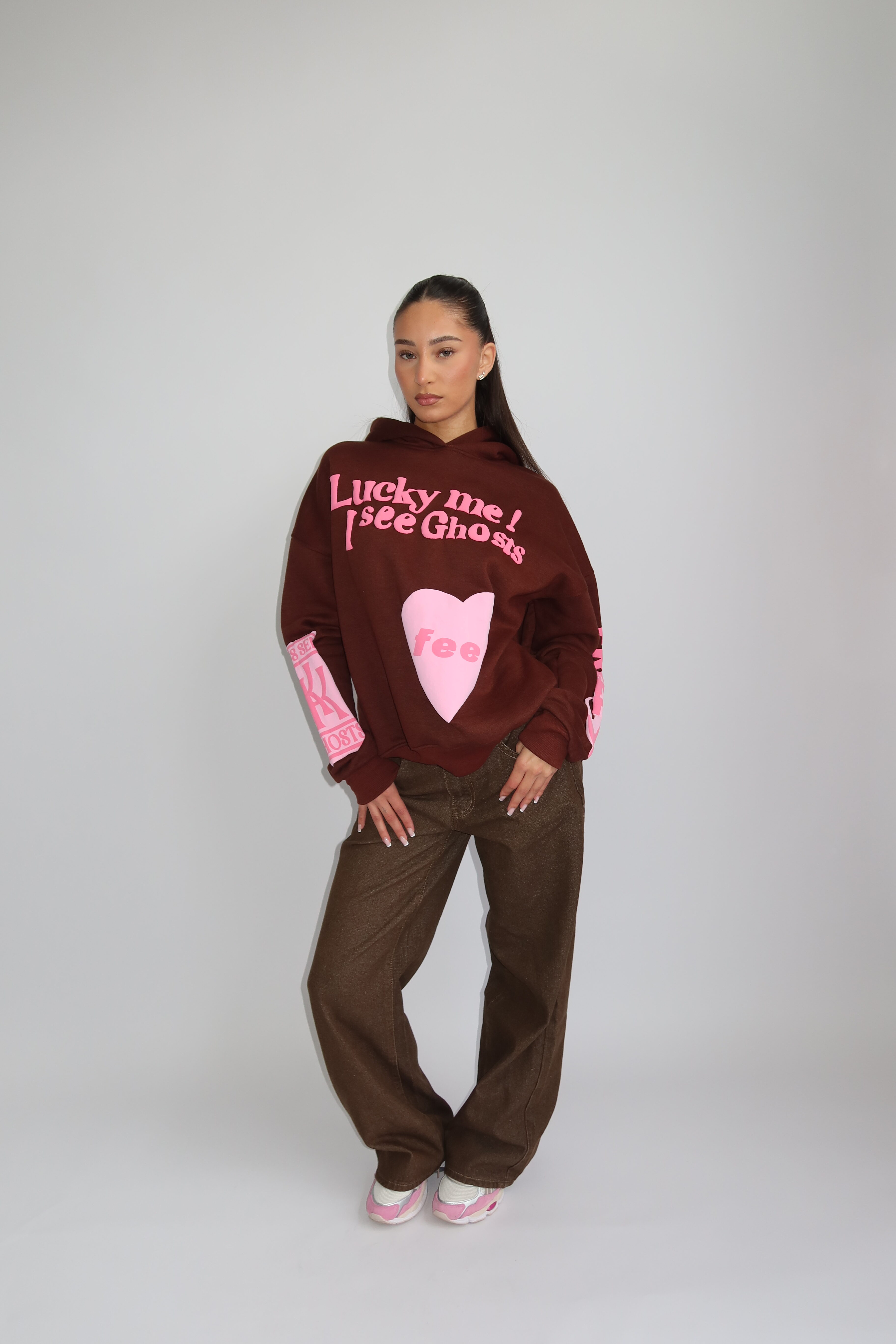 AW25 – LUCKY ME HOODIE – BROWN WITH PINK