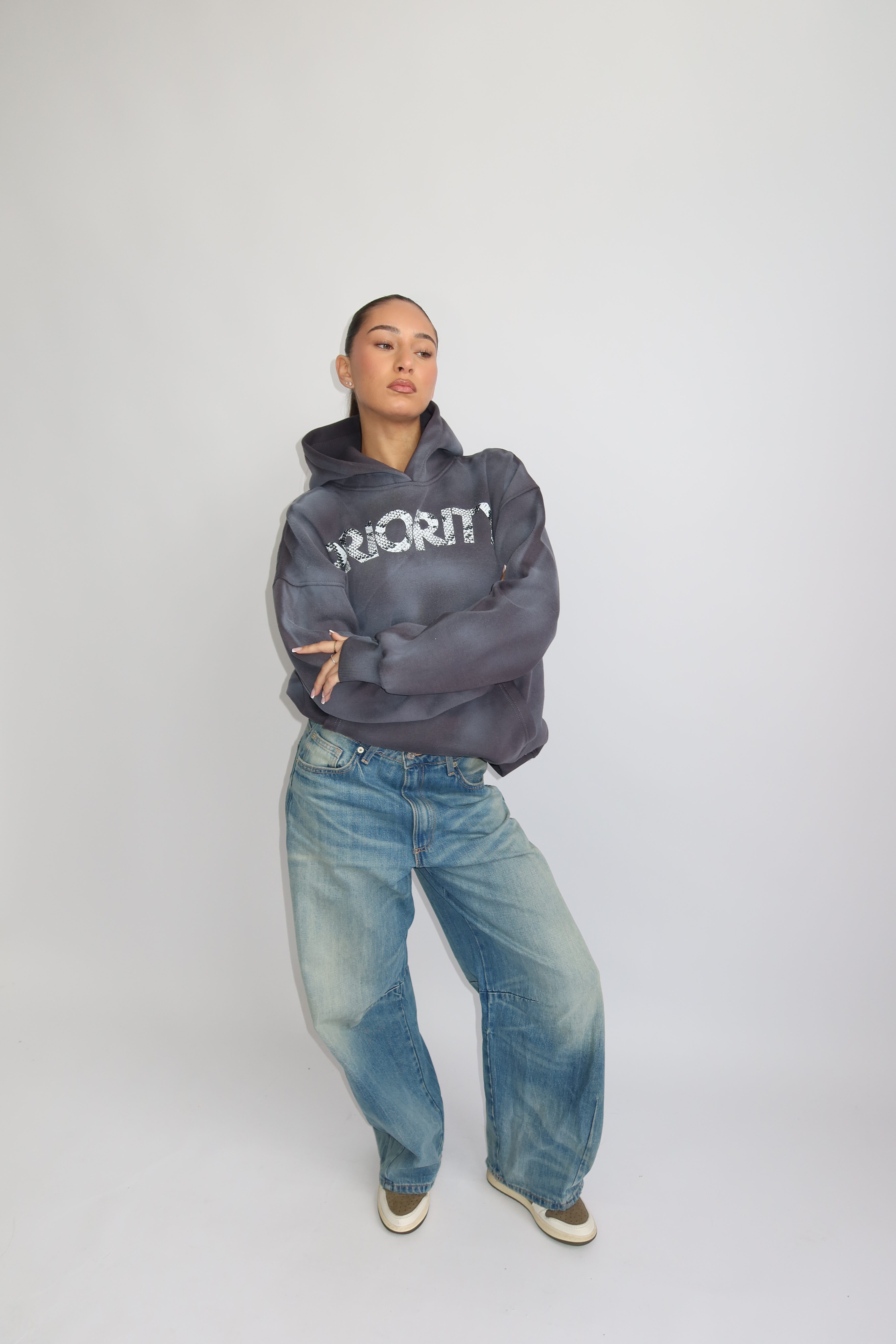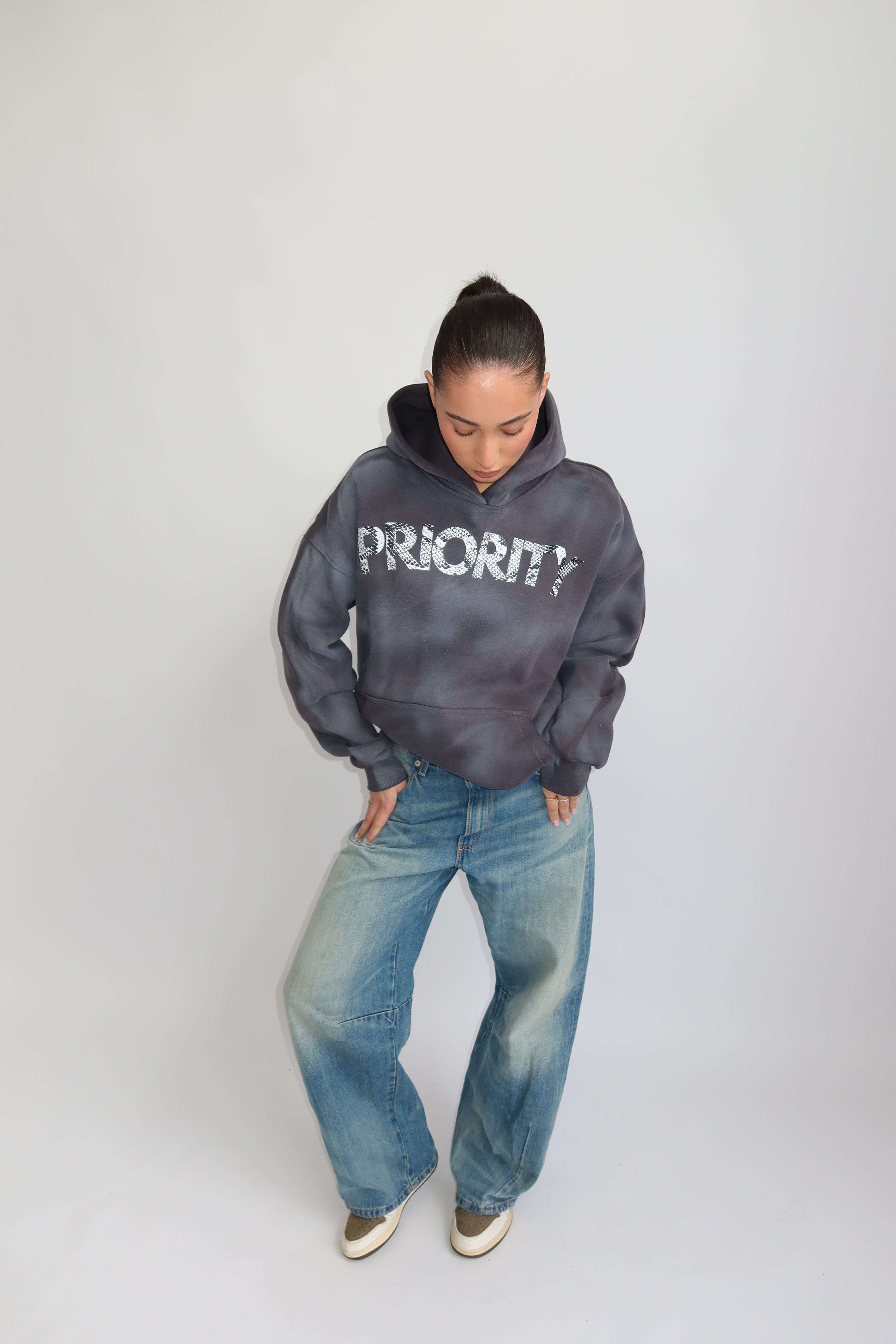 AW25 – PRIORITY SNAKEPRINT HOODIE – DENIM GRAY