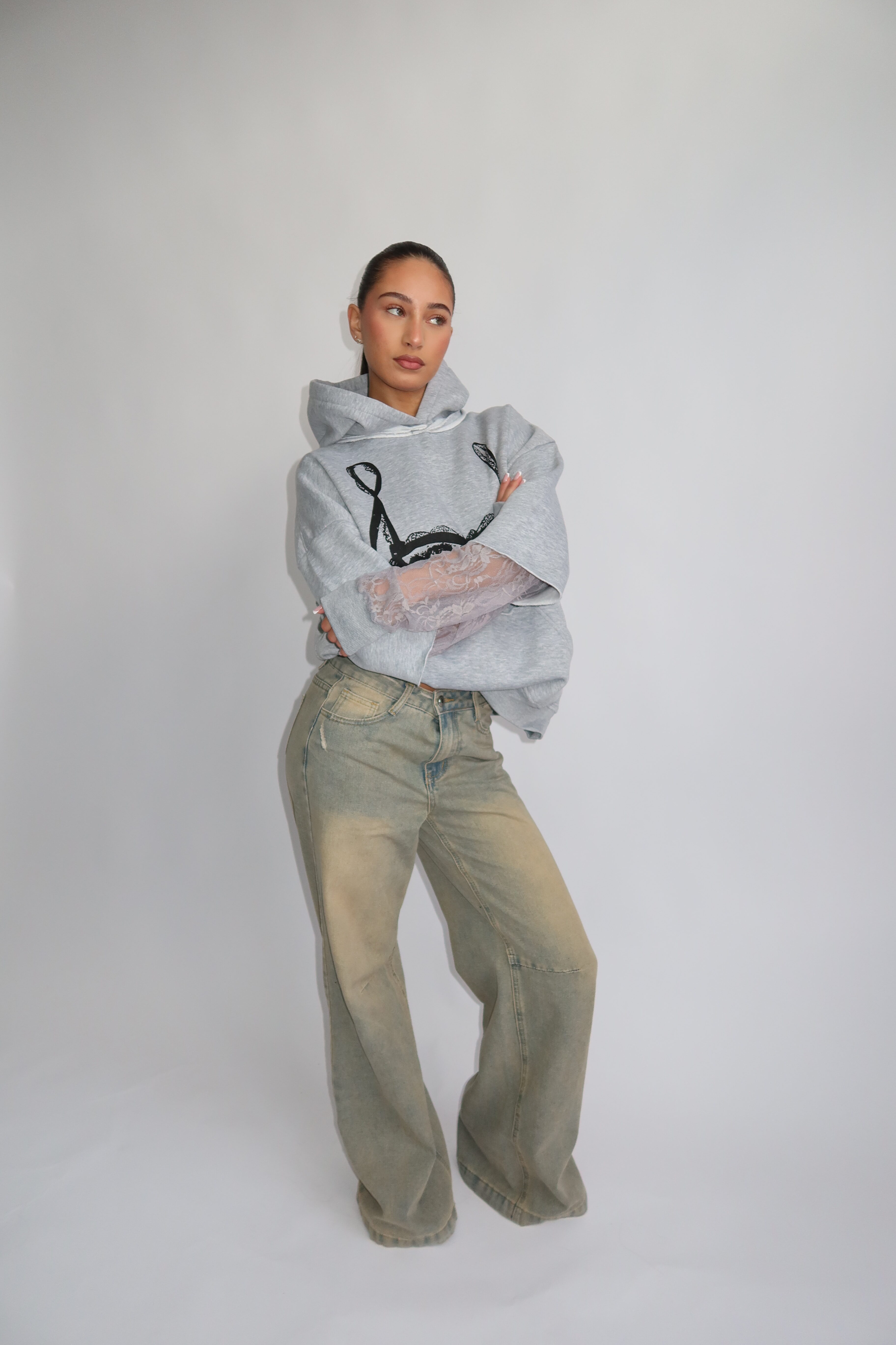 AW25 – PRIORITY SPICE LACE HOODIE – MELANGE GRAY