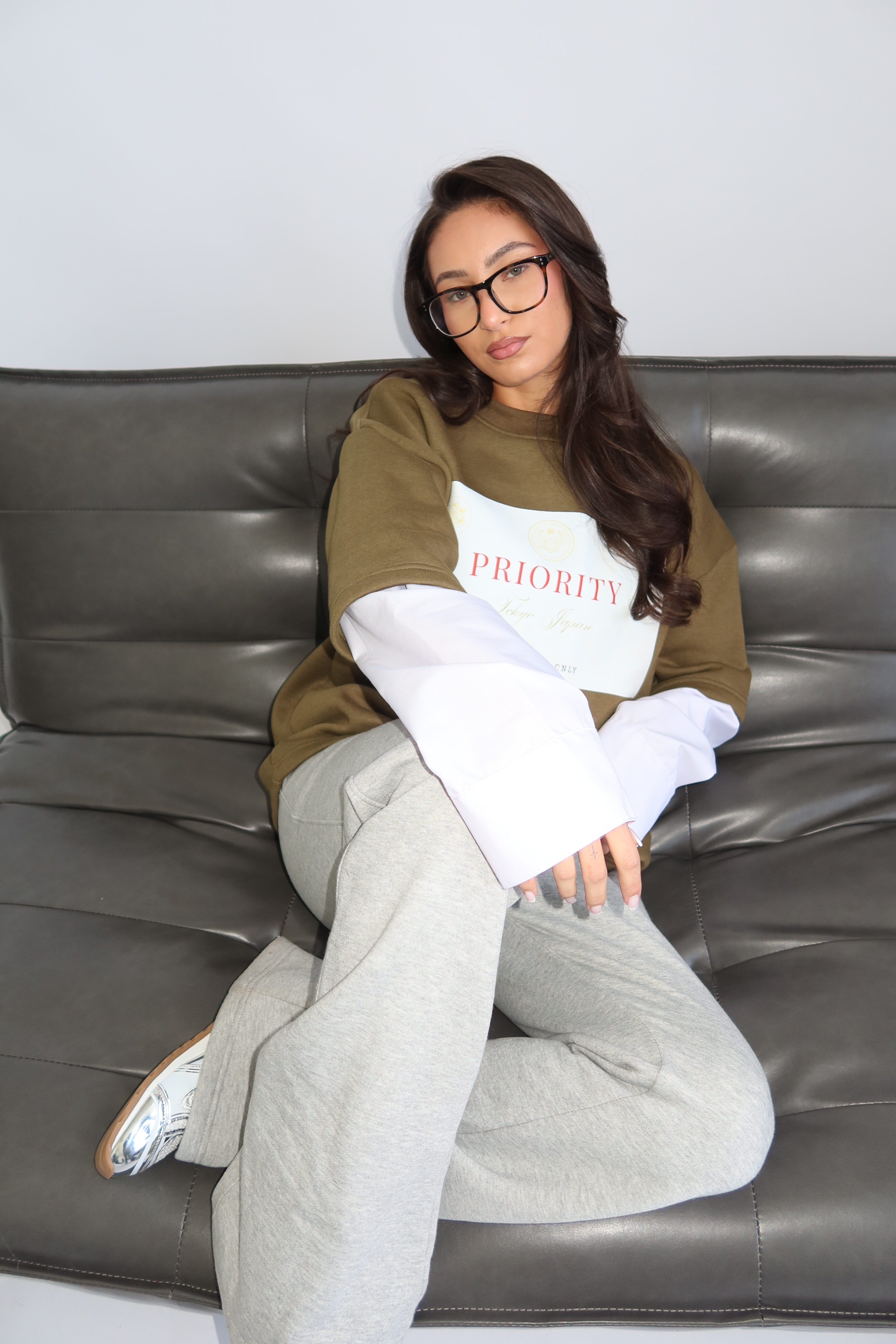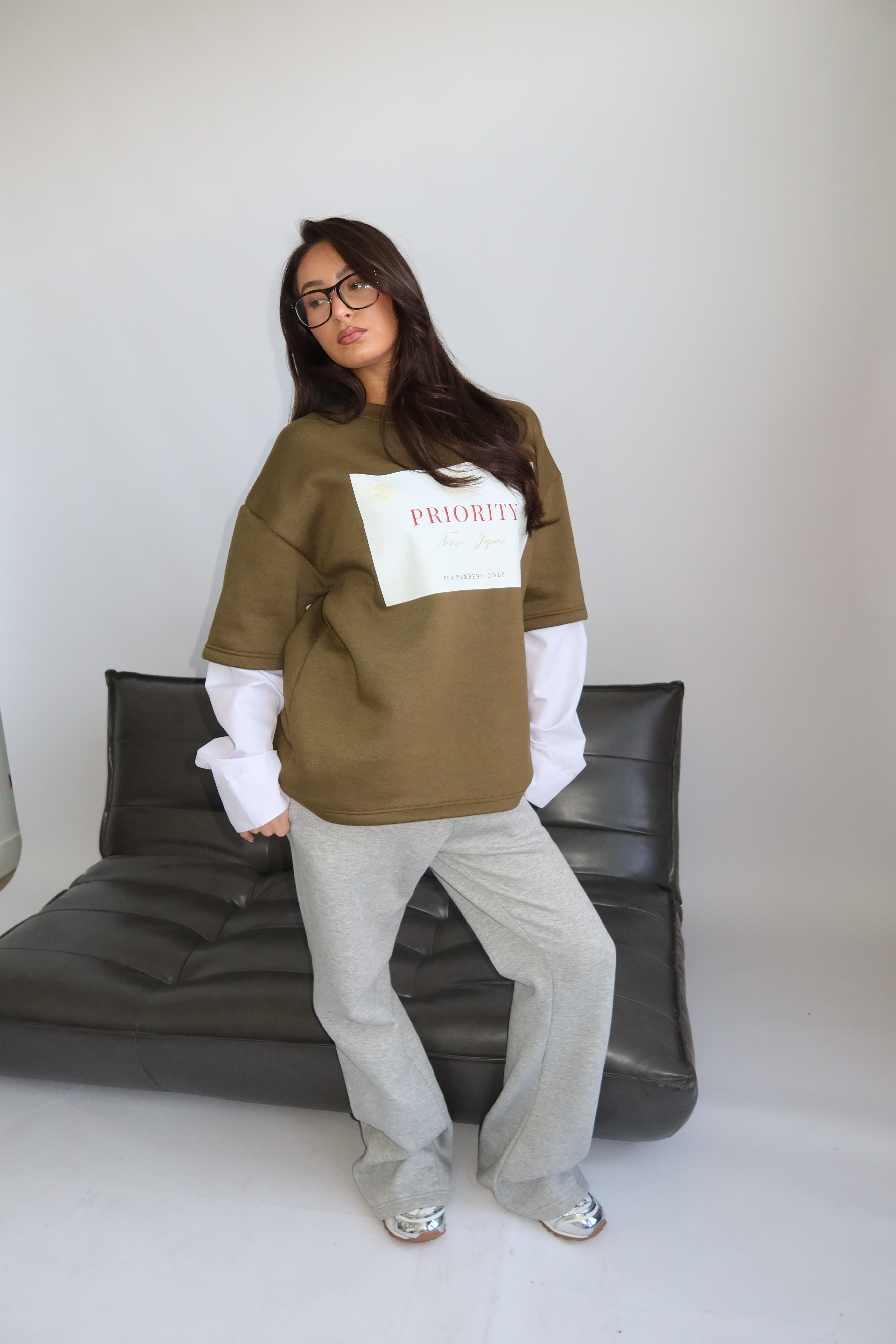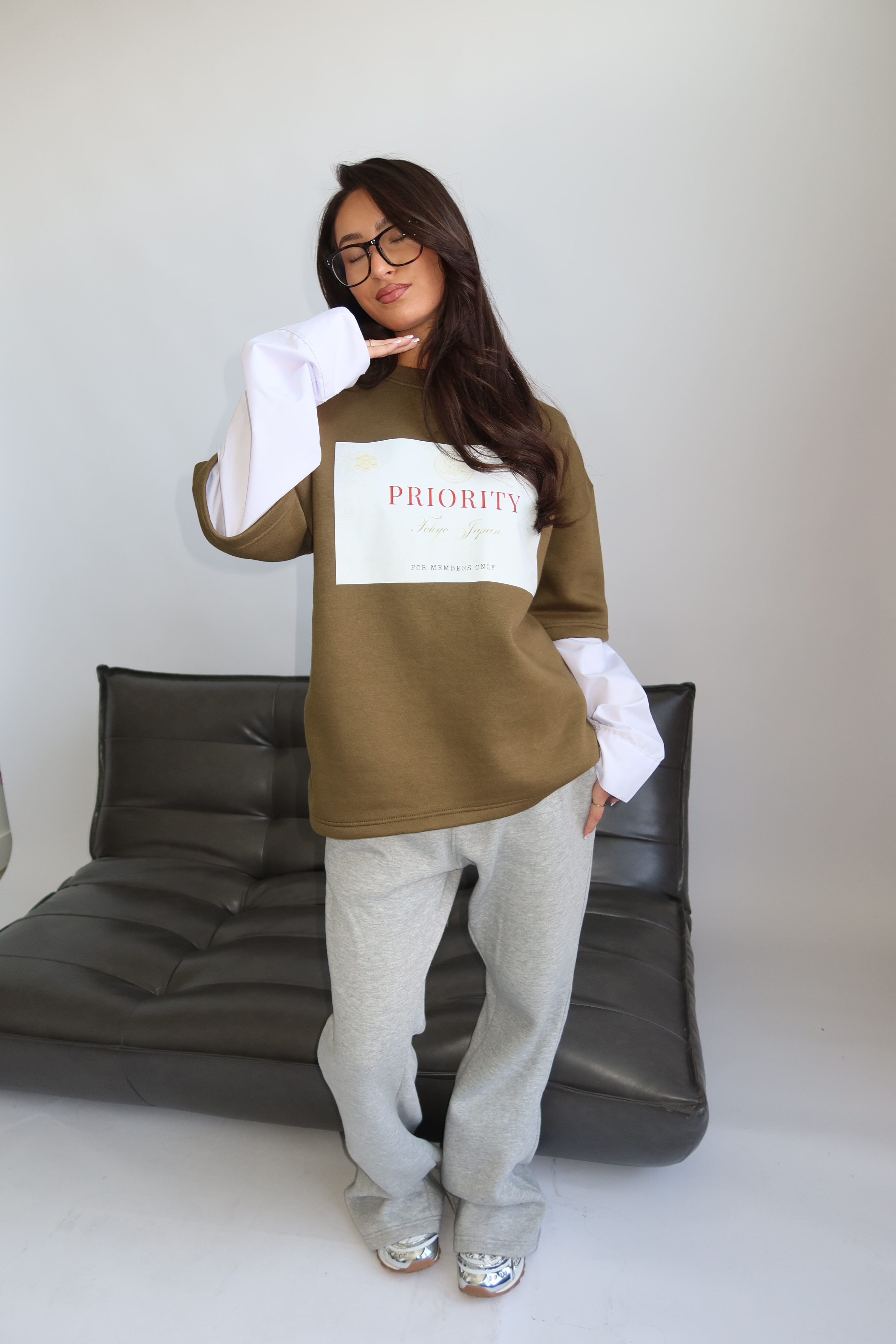 AW25 – TOKYO IN PRIORITY – SWEATER SHIRT WITH BLOUSE SLEEVES – KHAKI