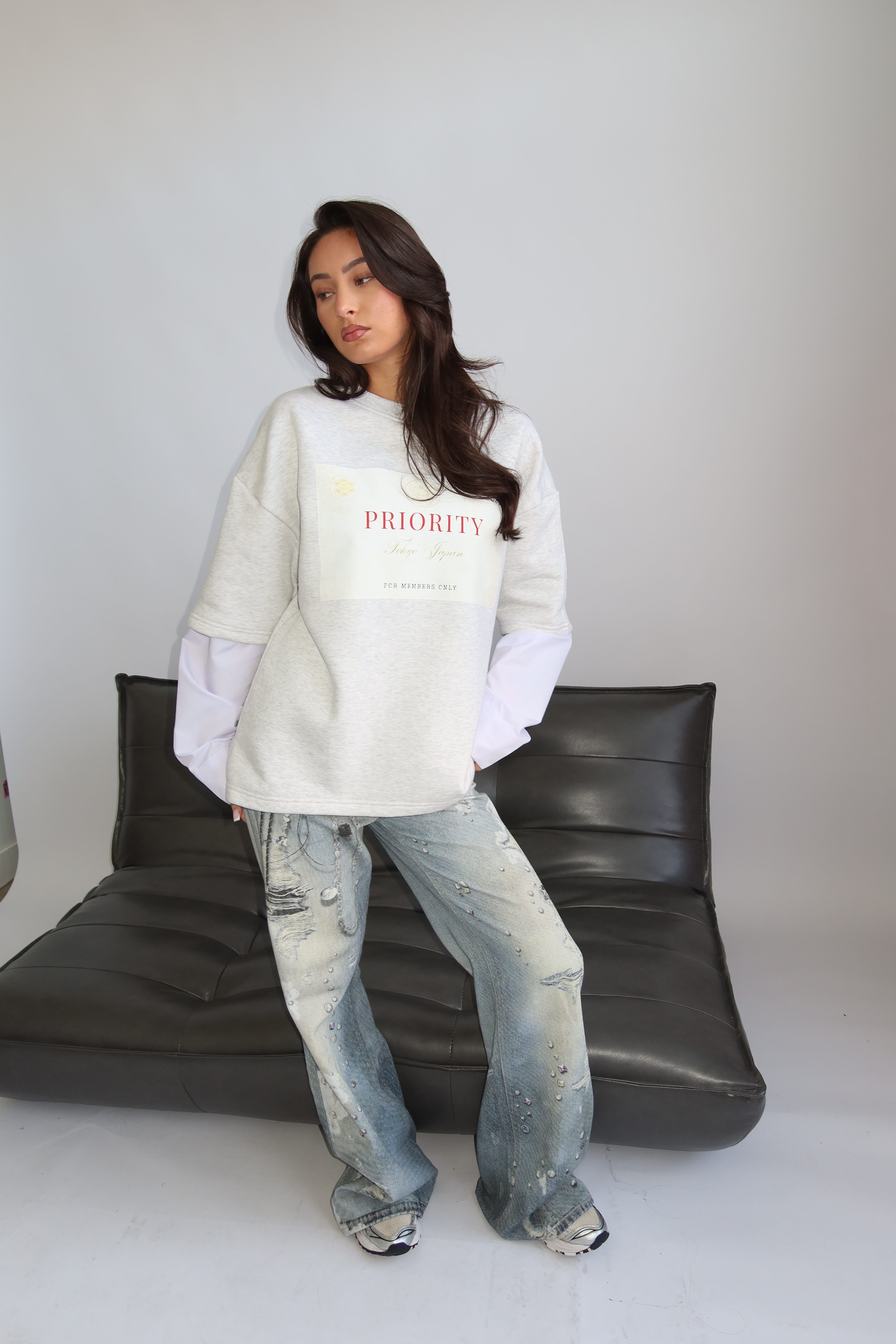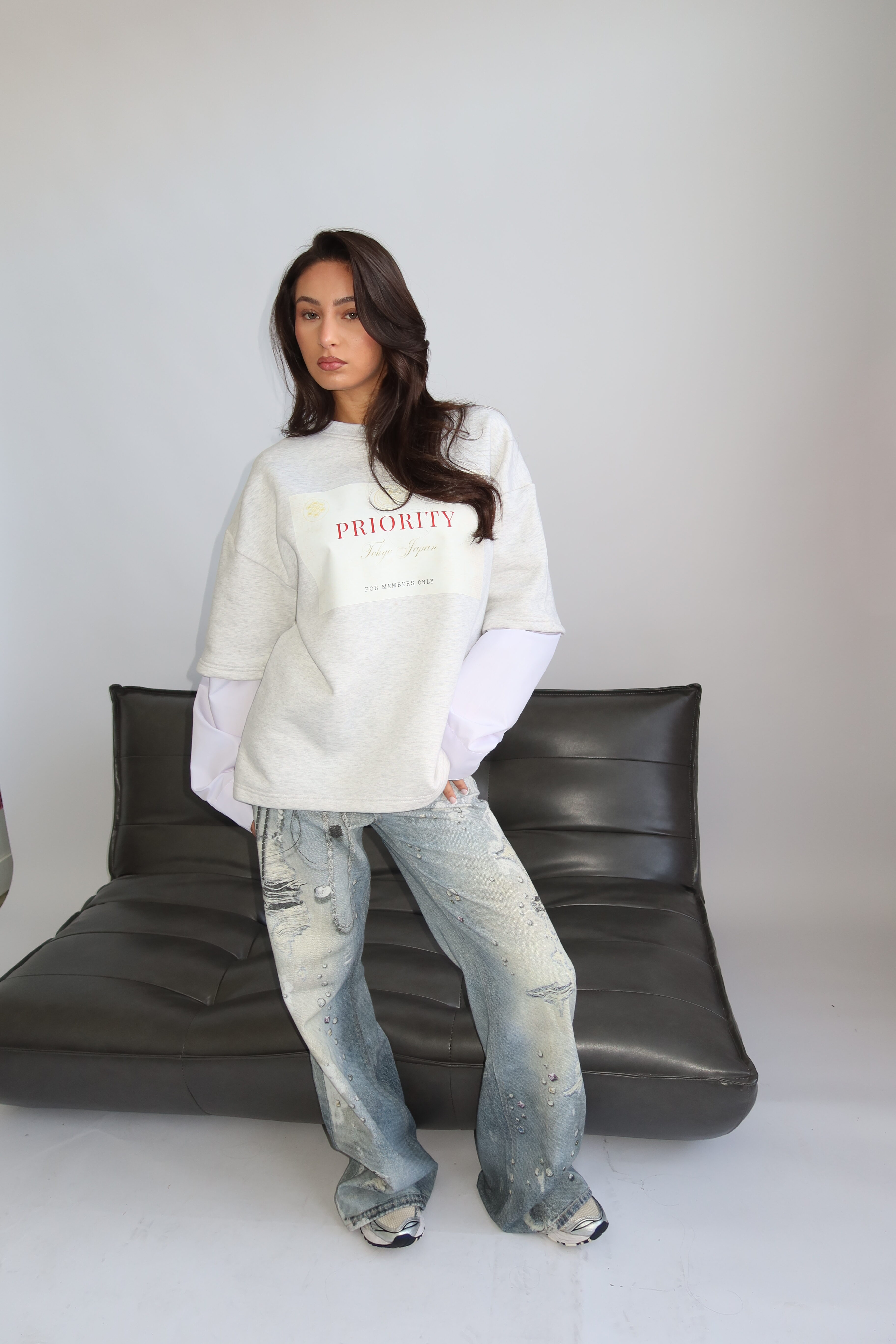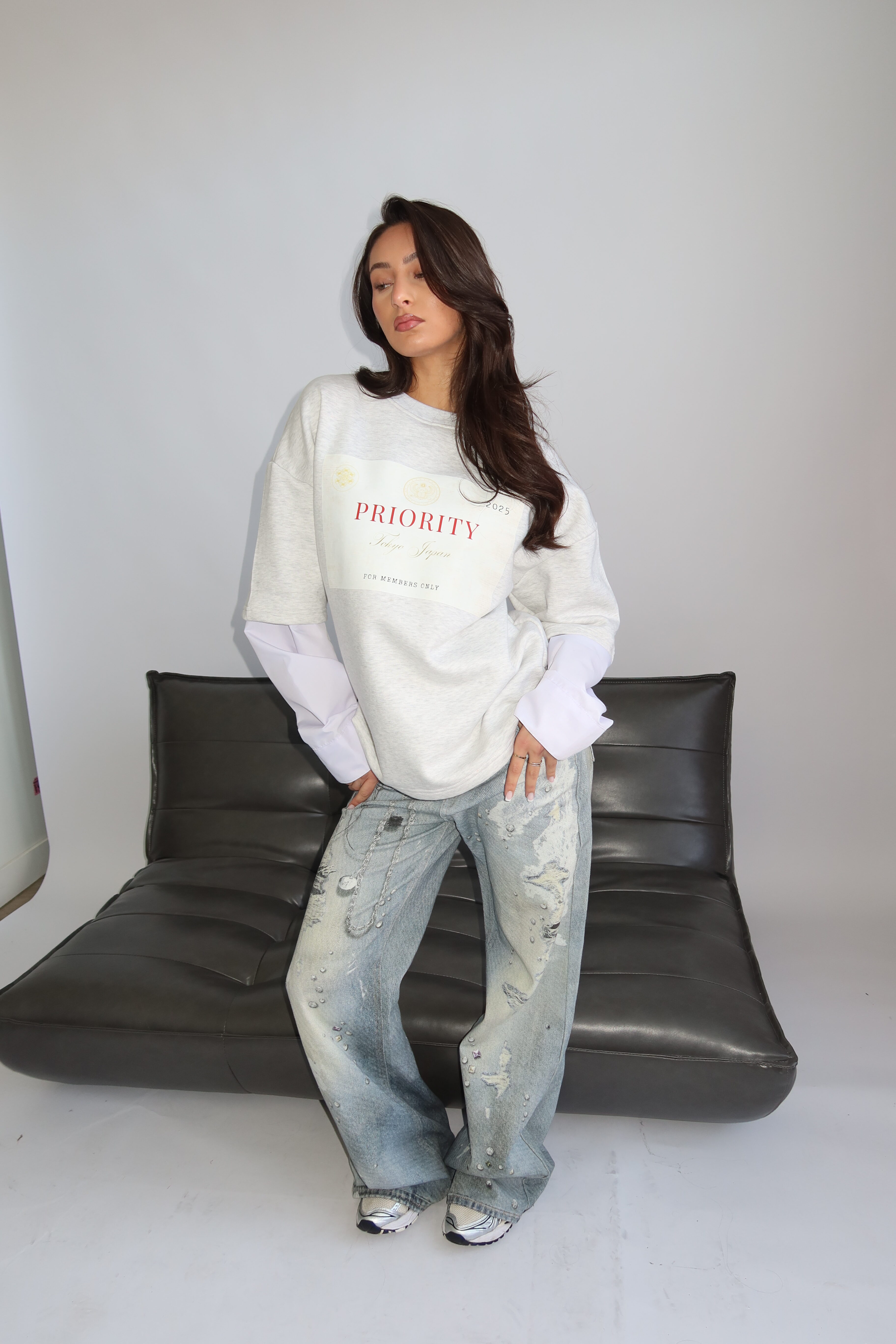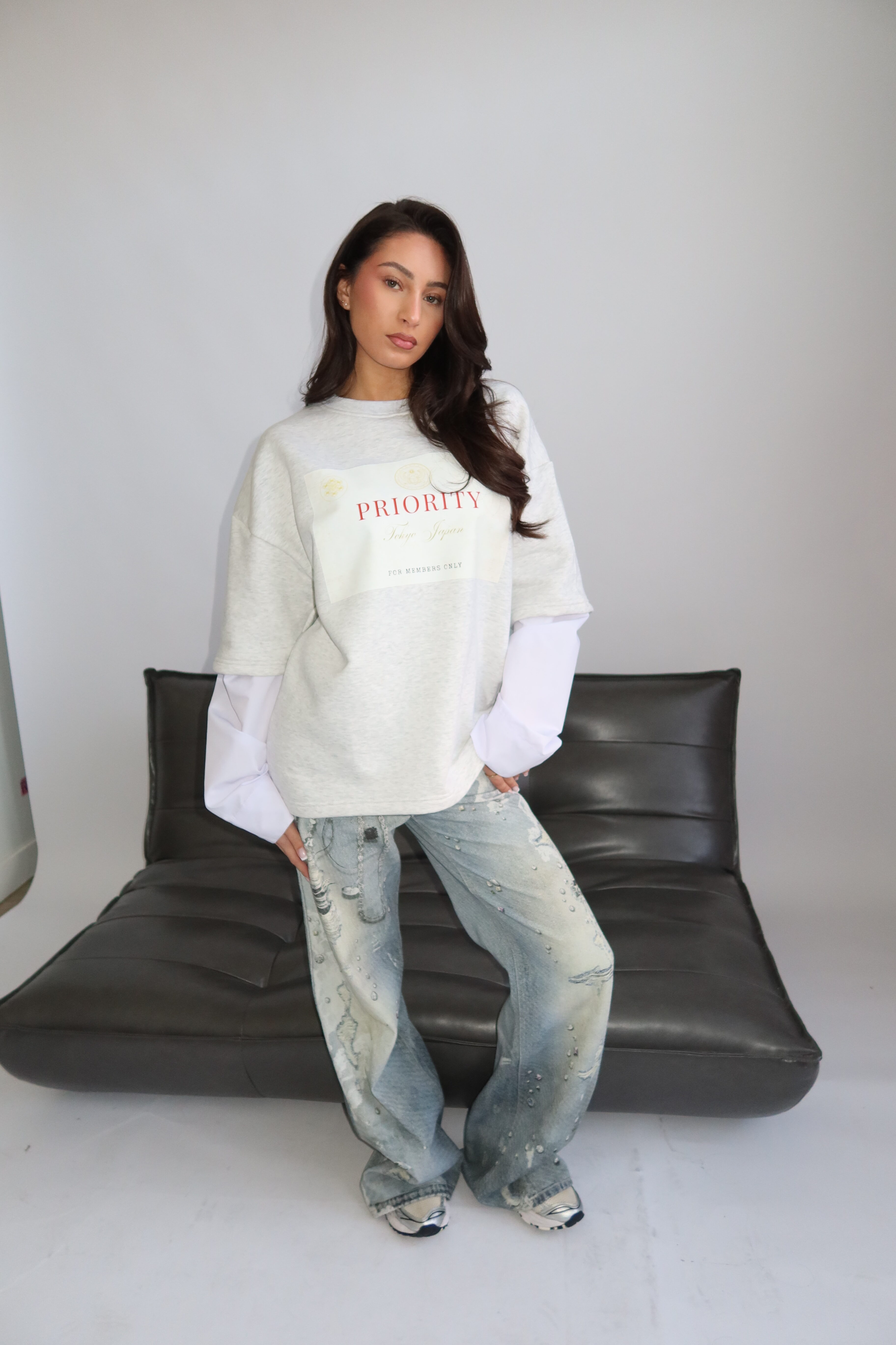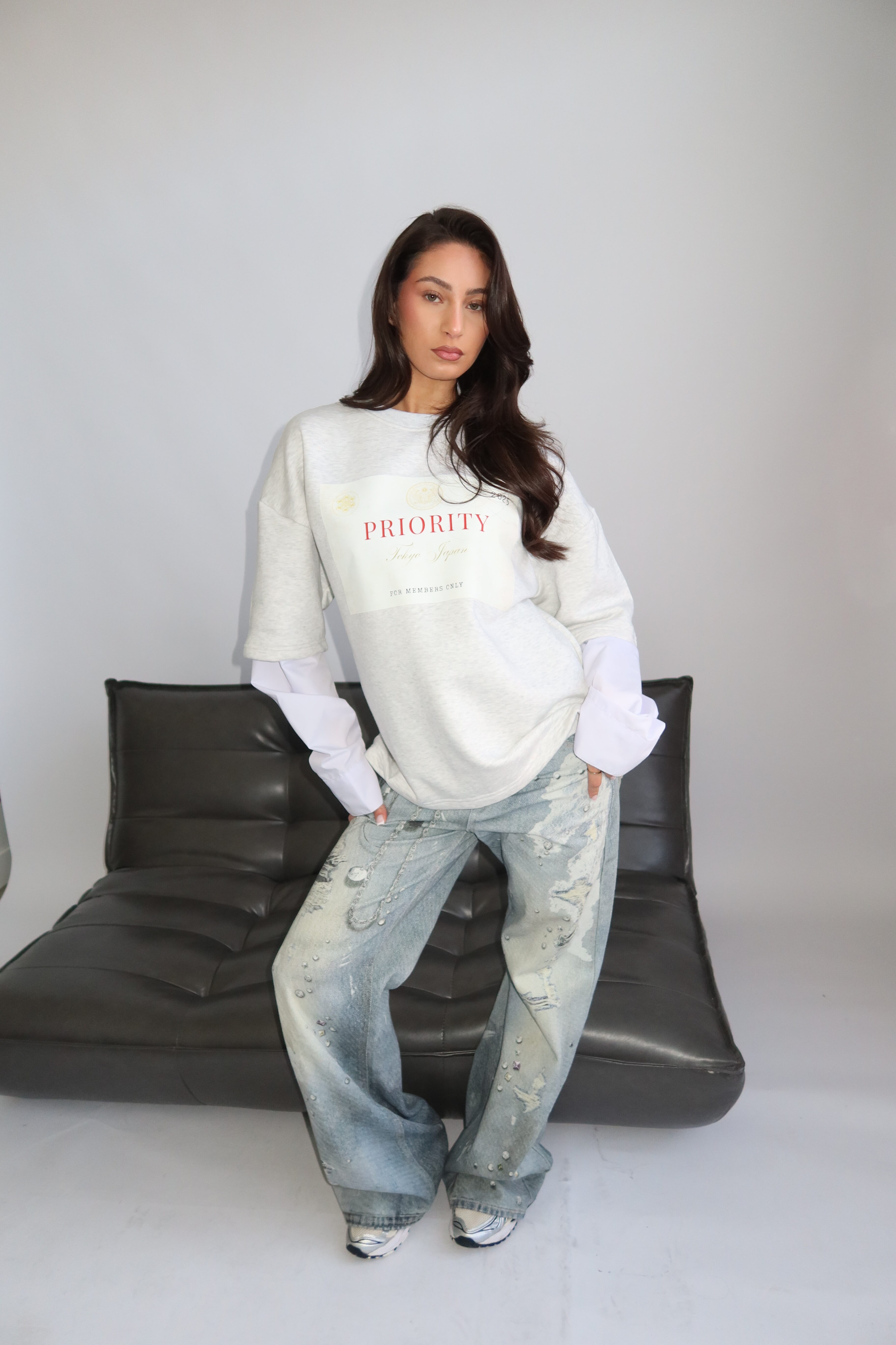 AW25 – TOKYO IN PRIORITY – SWEATER SHIRT WITH BLOUSE SLEEVES – LIGHT GRAY